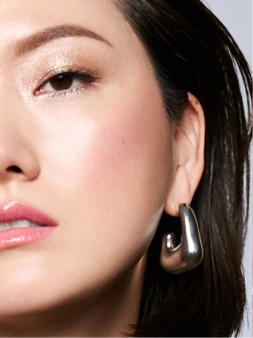 Swipe Long-Wear Cream Shadow Stick in Mica on lids, blending up to crease with fingers. Layer Luxe Eye Shadow in Moonstone on crease, upper and lower lashes, and inner corner to add brightness. Line the top lash line with 24 Hour Kajal Liner Waterproof in Cool Steel to add definition.